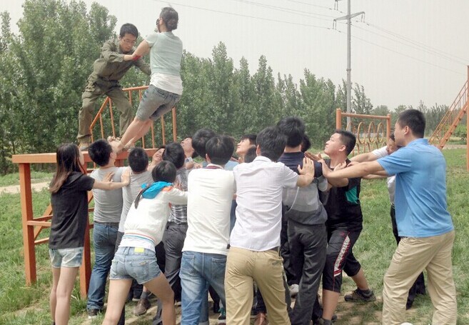 只要我们都翻过这面墙我们就毕业喽!团结、信任彼此的小伙们在齐心协力!